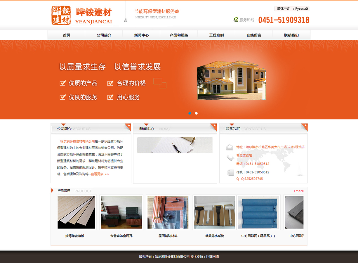 哈爾濱曄銨建材有限公司,是一家以經營節能環保型建材為主的專業建材服務與銷售公司。為配合國家節能環保戰略的實施,滿足不同客戶對于新型建筑材料的需求,曄銨建材將為您提供專業的服務。涵蓋售前規劃設計、售中技術支持與安裝、售后保障及咨詢等。曄銨建材榮譽成為“蒂美”落水系統、“瑯博”陶瓷薄板、“卡普泰爾”金屬瓦、“中方圓”水泥瓦等業界一線知名品牌的省級經銷商。為您提供全方位的屋面系統、墻面(內外)系統、排水系統、新型保溫系統、內部裝修系列產品供應等服務,打造由外到內一站式高、中端建材整體服務模式,率先引領新型建材銷售服務體系的建立與標準。