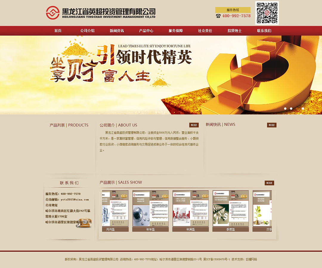 黑龍江省英超投資管理有限公司,注冊資金5000萬元人民幣,營業面積千余平方米,是一家集財富管理、信用風險評估與管理、信用數據整合服務、小額貸款行業投資、小微借款咨詢服務與交易促進成等業務于一體的綜合性現代服務企業。
