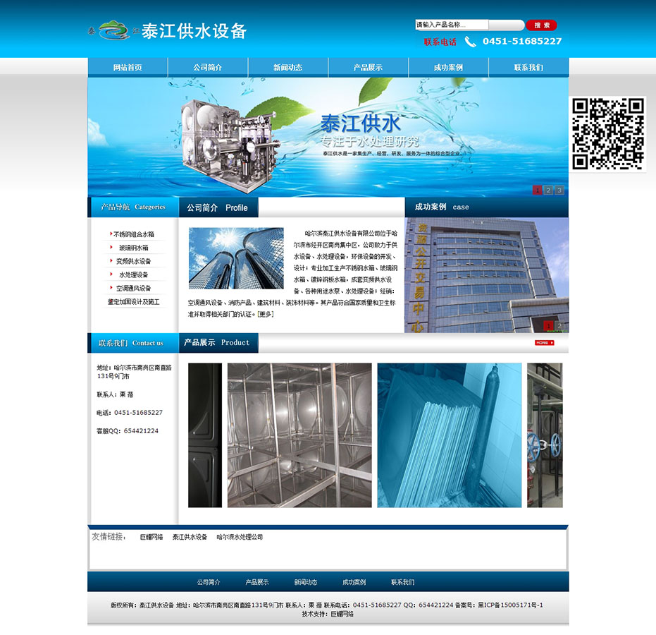 哈爾濱泰江供水設備有限公司位于哈爾濱市經開區南崗集中區,公司致力于供水設備、水處理設備,環保設備的開發、設計;專業加工生產不銹鋼水箱、玻璃鋼水箱、鍍鋅鋼板水箱,成套變頻供水設備、各種用途水泵、水處理設備;經銷:空調通風設備、消防產品、建筑材料、裝飾材料等。其產品符合國家質量和衛生標準并取得相關部門的認證。